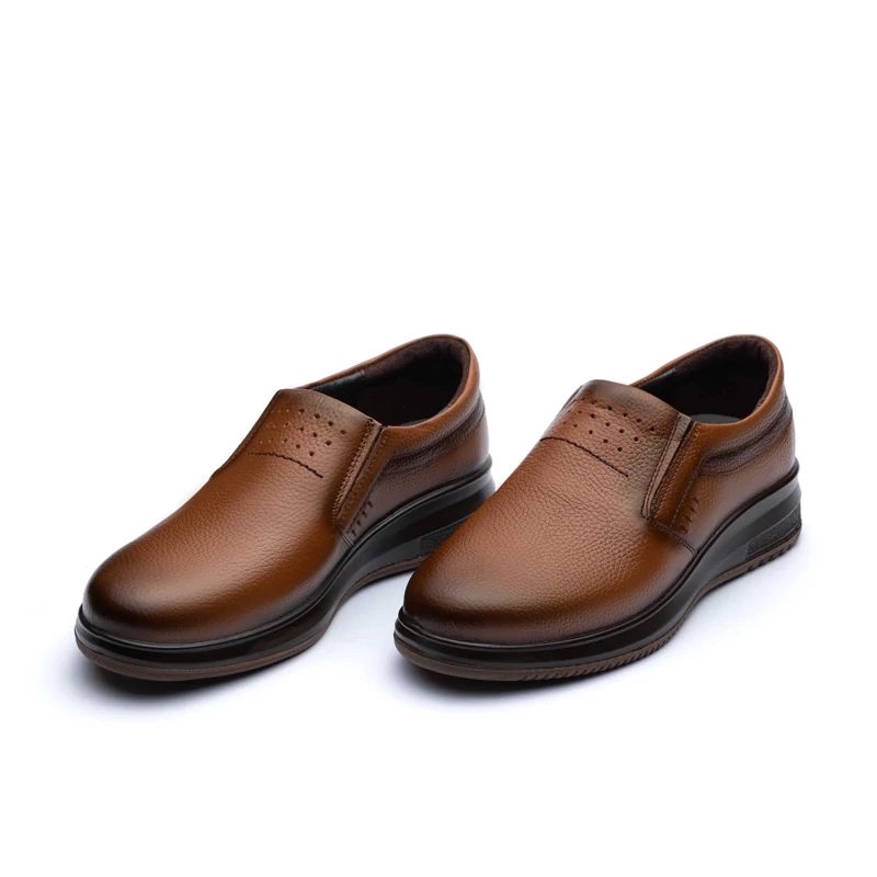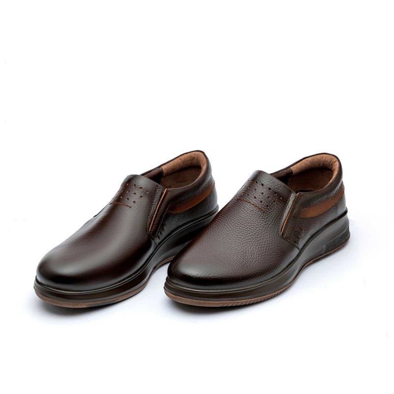 کفش روزانه چرم تبریز الیور بی بند زیره تزریق دو رنگ با کف چرم طبیعی