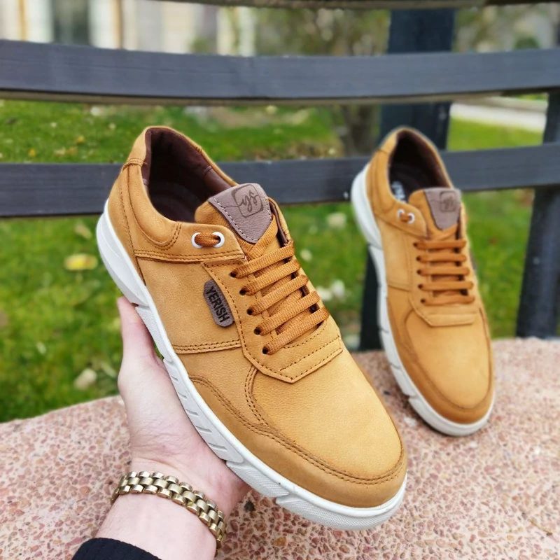 کفش تمام چرم رویه و استر چرم طبیعی کفی طبی چرمی زیره لاستیک قالب بزرگ